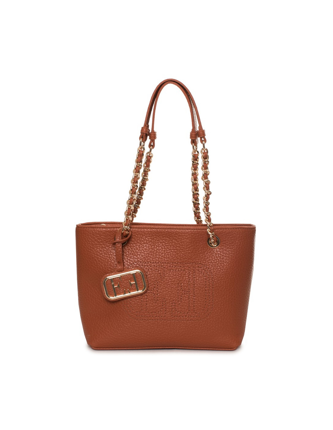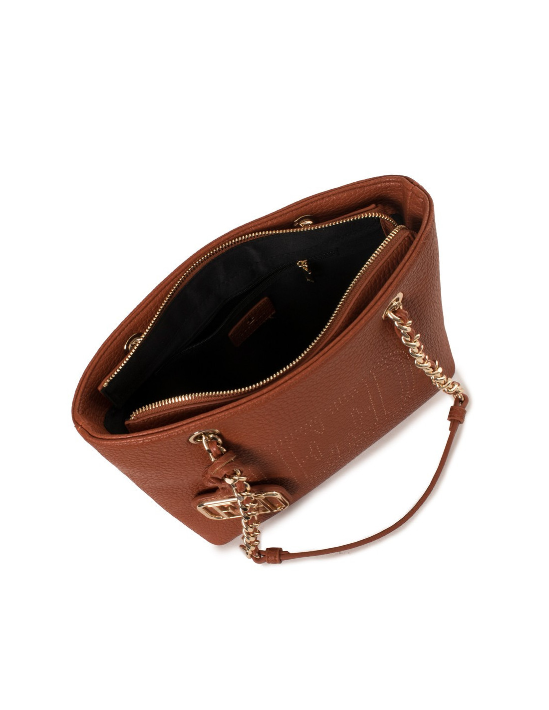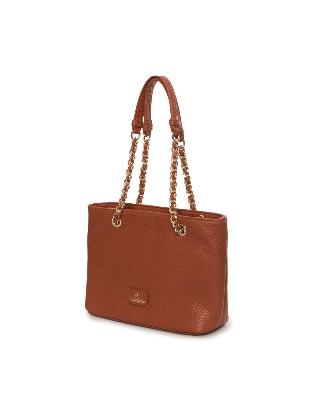 SHOULDER BAG, FOR WOMEN, DOUBLE HANDLE, SOLID COLOUR, WITH LOGO, ZIP CLOSURE