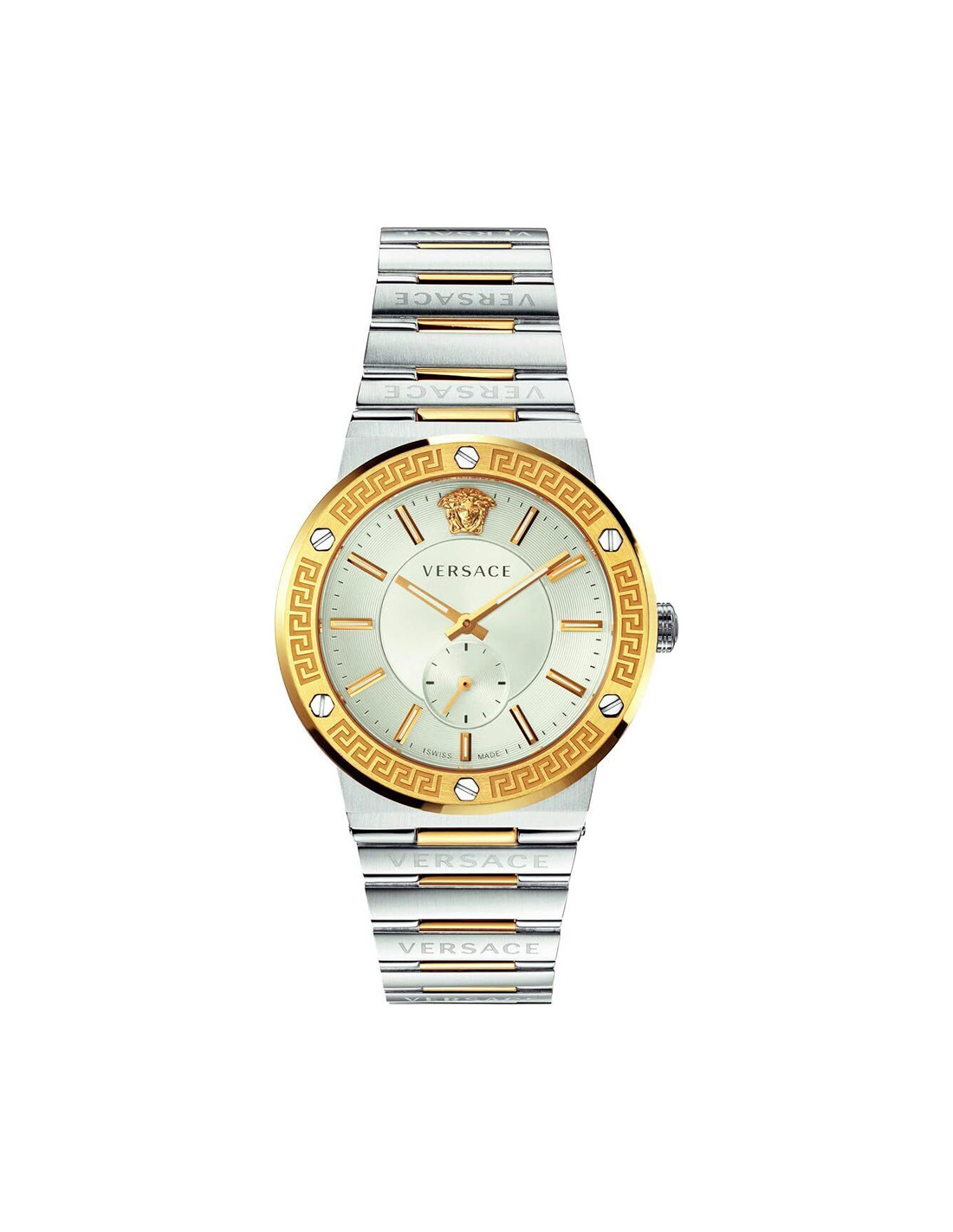 VersaceVersace VEVI00320 Greca Logo Damenuhr, Quarzuhr, Edelstahlgehäuse, Edelstahlarmband, Silber/Gold