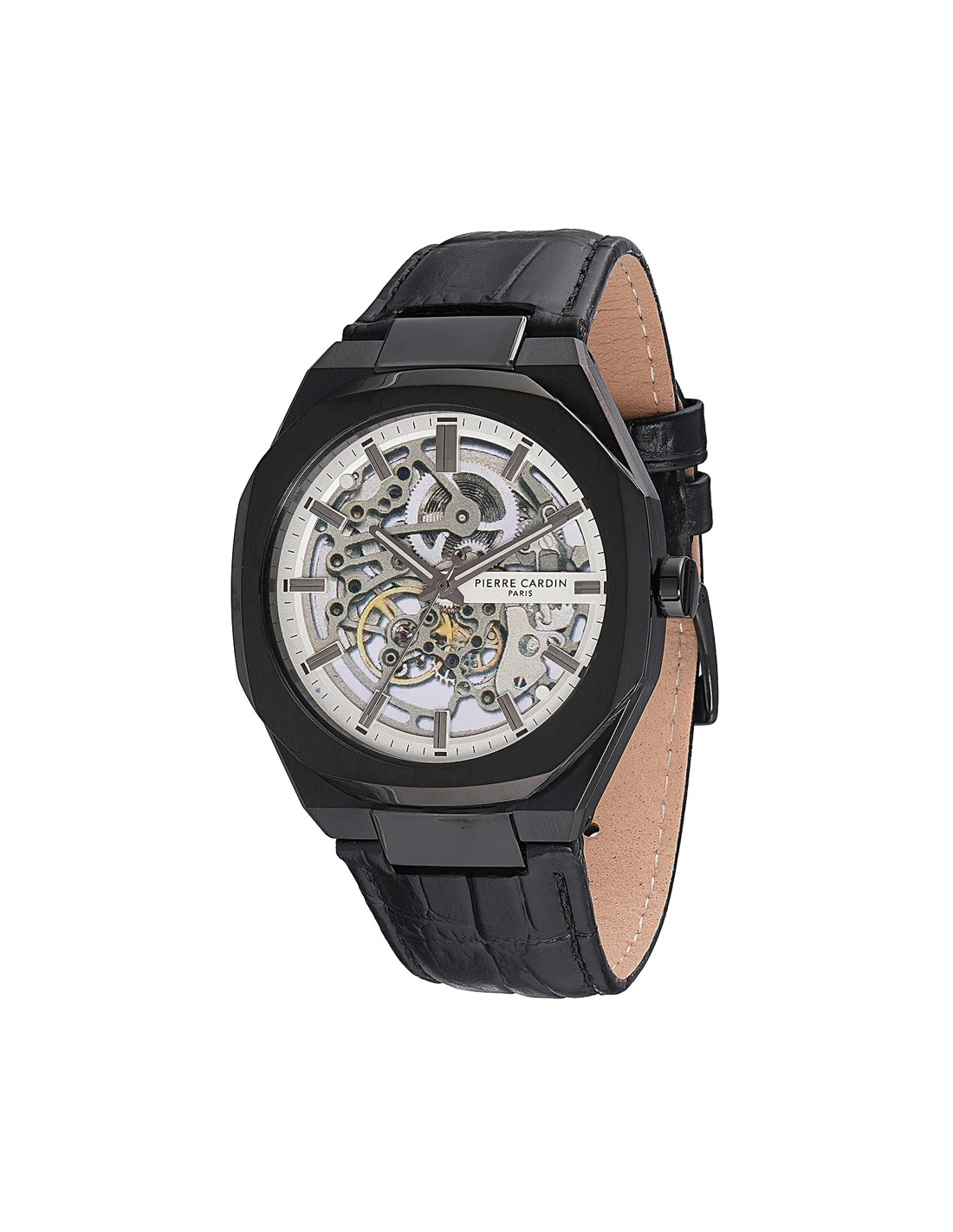 PIERRE CARDINPierre Cardin Élysée Automatik CF.1002.LB.1 Herrenuhr, Edelstahlgehäuse, Lederarmband, Analoge Anzeige, Automatikuhrwerk, Schwarz