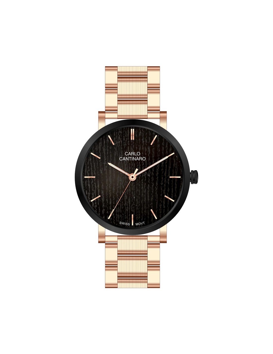 Carlo CantinaroCarlo Cantinaro CC1001GB004 Herrenuhr, Quarzuhr, Edelstahlgehäuse, Edelstahlarmband, Roségold/Schwarz