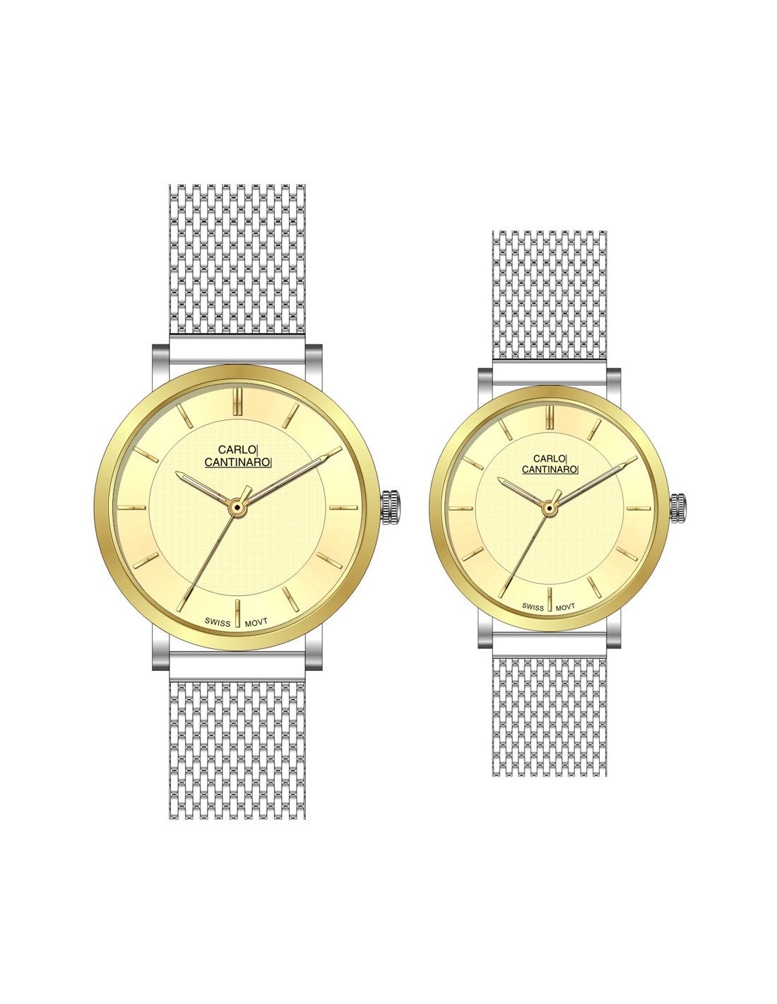 Carlo CantinaroCarlo Cantinaro CC3001SM005 Partnerset Unisexuhr, Quarzuhr, Edelstahlgehäuse, Edelstahlarmband, Silber/Gold