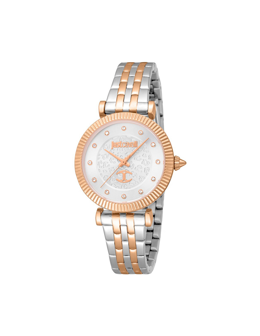 - Stainless steel case, silver and rose gold colored coating, polished