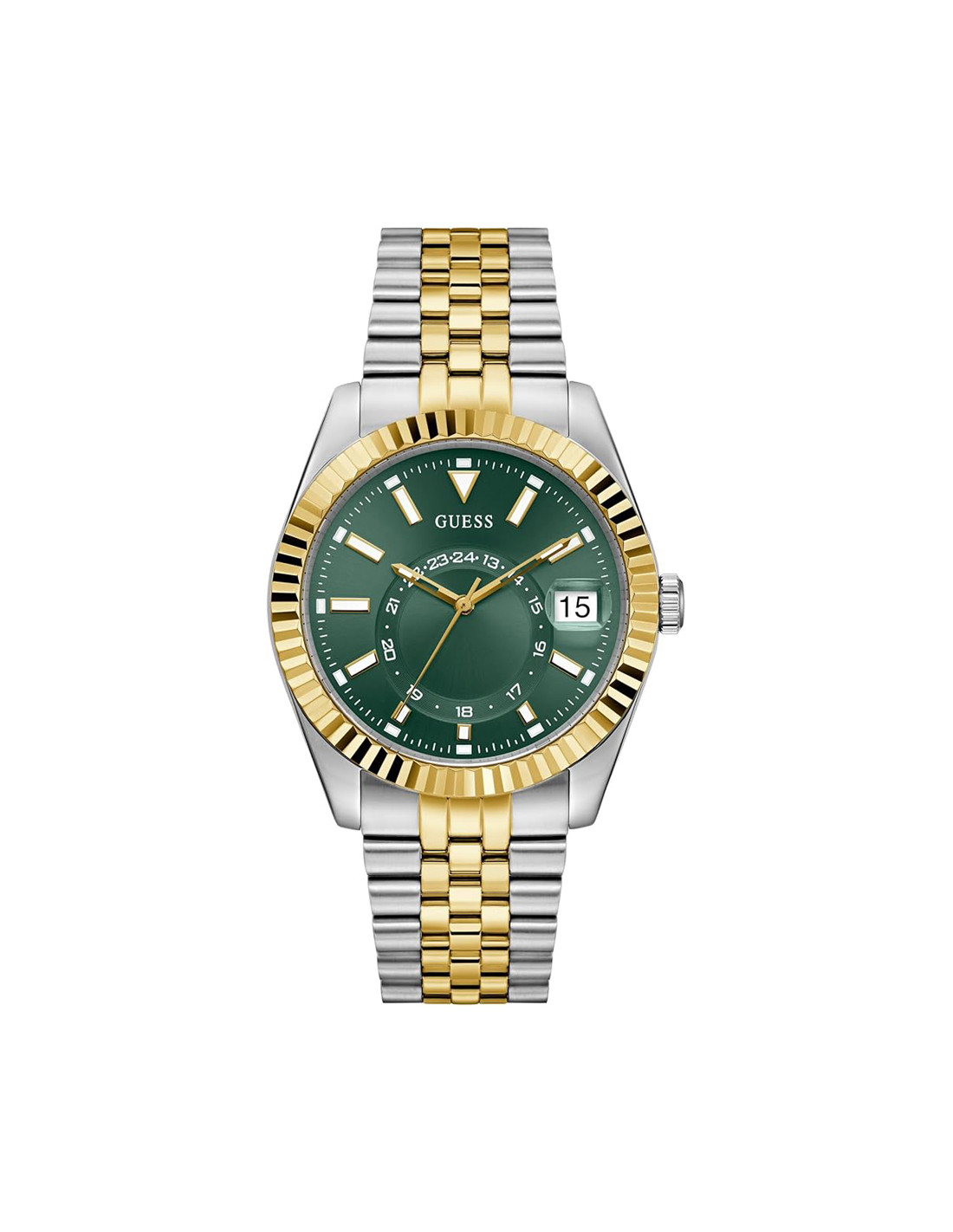 - Stainless steel case, silver and gold colored coating, polished / mat